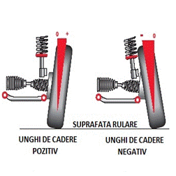 automobilului. In general,  o cadere a rotilor mai negativa (partea superioara a rotii inclinata inspre interior) are ca efect cresterea aderentei  prin cresterea tractiunii laterale a rotilor (in viraje).