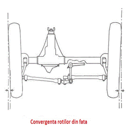 Este definita drept unghiul format intre planul median longitudinal al automobilului si dreapta de intersectie a planului median al rotii cu planul caii de rulare. Aceasta este pozitiva (toe-in) cand partea frontala a rotii este inclinata spre planul median longitudinal al automobilului. Rotile paralele cu linia centrala a automobilului au un unghi neutru (0 grade) de convergenta. Rotile indreptate in fata avand un unghi negativ reprezinta o convergenta negativa (toe-out). Rotile indreptate in fata avand o valoare pozitiva a unghiului reprezinta o convergenta pozitiva (toe-in).